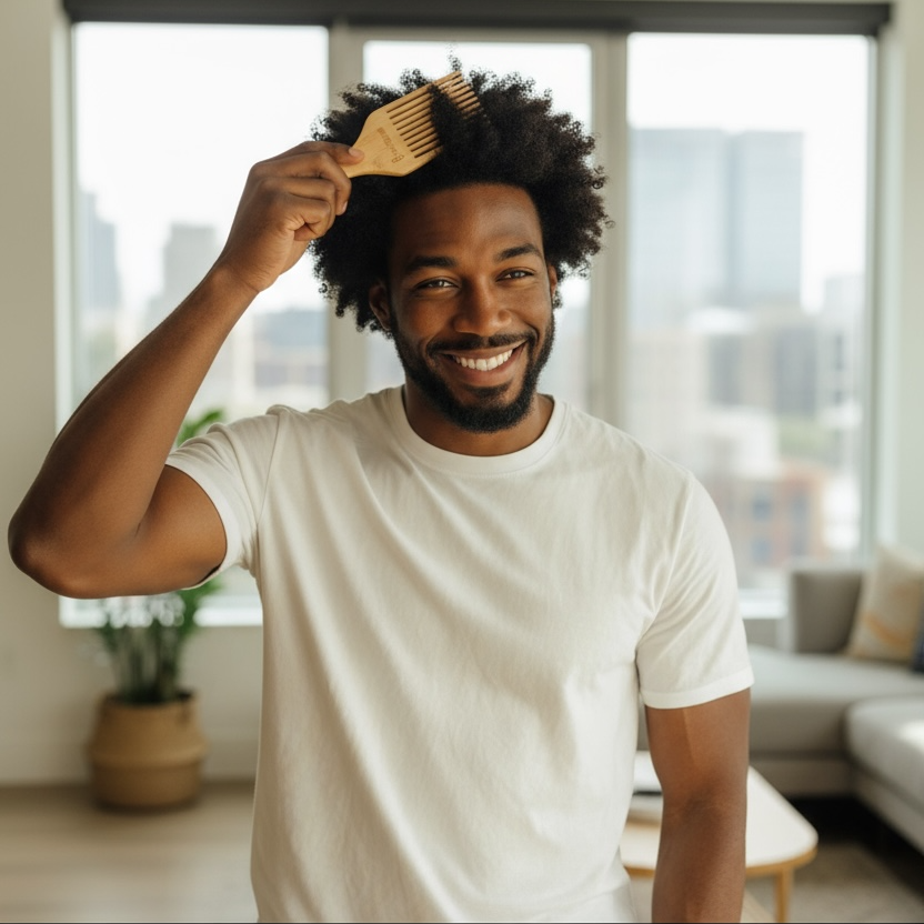 Style and detangle your hair naturally with this bamboo hair pick, designed for all hair types. Its smooth teeth gently glide through your hair, reducing breakage and static. This hair pick is biodegradable, durable, and a perfect plastic-free alternative for your hair care routine.