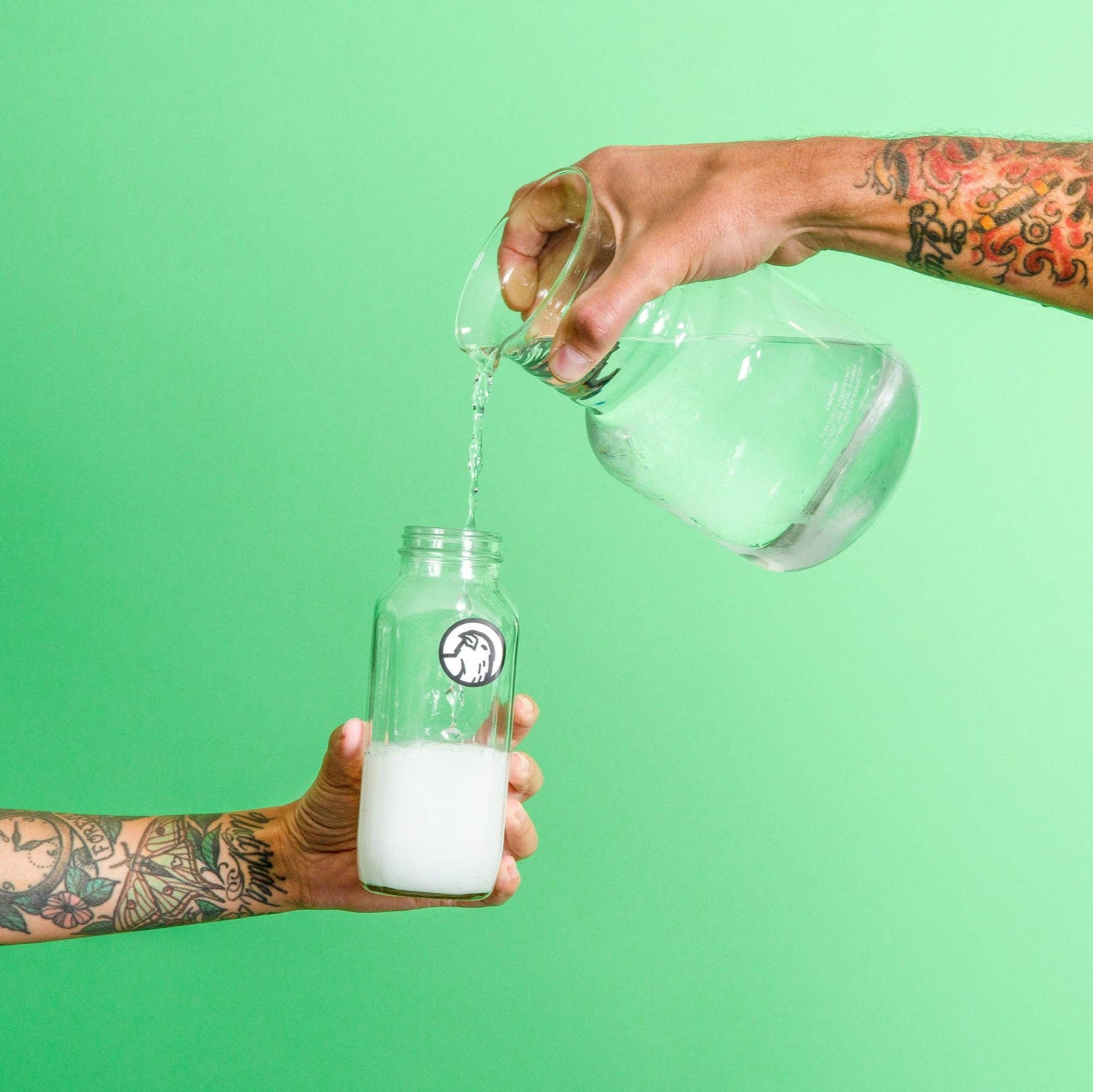 This formula, once mixed with fresh water tastes great and leaves your breath kissably-fresh. The reusable glass mixing bottle in the kit is meant to be refilled over and over again in an effort to help rid our landfills of additional waste.